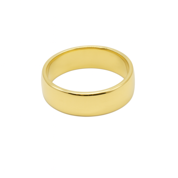 This ring is a classic plain gold band with a smooth, highly polished finish. It has a medium-to-thick width, giving it a bold yet timeless look. The simple design, engravings, emphasizes its rich golden hue and sleek, rounded edges. This style is versatile, making it suitable for both men and women as a wedding band, or everyday accessory. When you purchase this ring you will get a free touch of gold mug.
